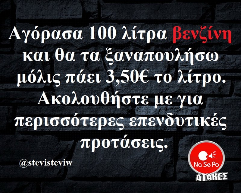 Αγόρασα 100 λίτρα βενζίνη