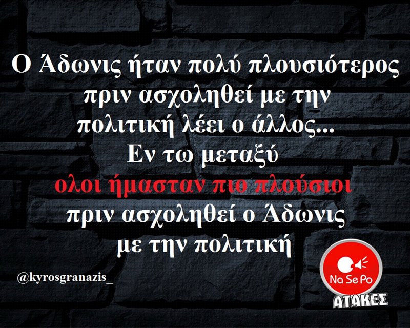 όλοι ήμασταν πιο πλούσιοι πριν ασχοληθεί ο Άδωνις με την πολιτική @kyrosgranazis_