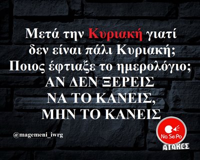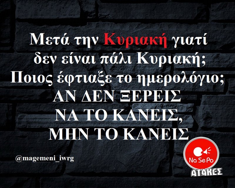 Μετά την Κυριακή γιατί δεν είναι πάλι Κυριακή;