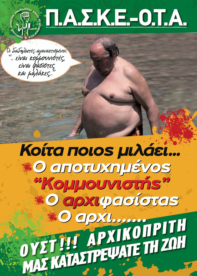 Η αφίσα της ΠΑΣΚΕ-ΟΤΑ για τον Πάγκαλο