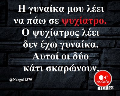 Η γυναίκα μου λέει να πάω σε ψυχίατρο.