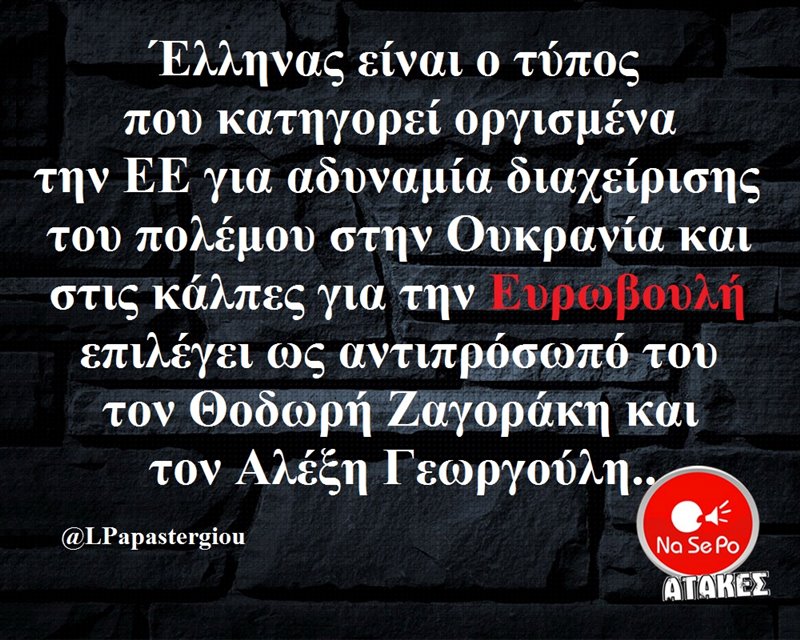 τύπος που κατηγορεί οργισμένα την ΕΕ για αδυναμία διαχείρισης του πολέμου στην Ουκρανία και στις κάλπες για την Ευρωβουλή επιλέγει ως αντιπρόσωπο του τον Θοδωρή Ζαγοράκη και τον Αλέξη Γεωργούλη.. @LPapastergiou