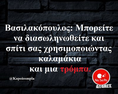 Βασιλακόπουλος: Μπορείτε να διασωληνωθείτε και σπίτι σας χρησιμοποιώντας καλαμάκια και μια τρόμπα. @Kapoiosmpla