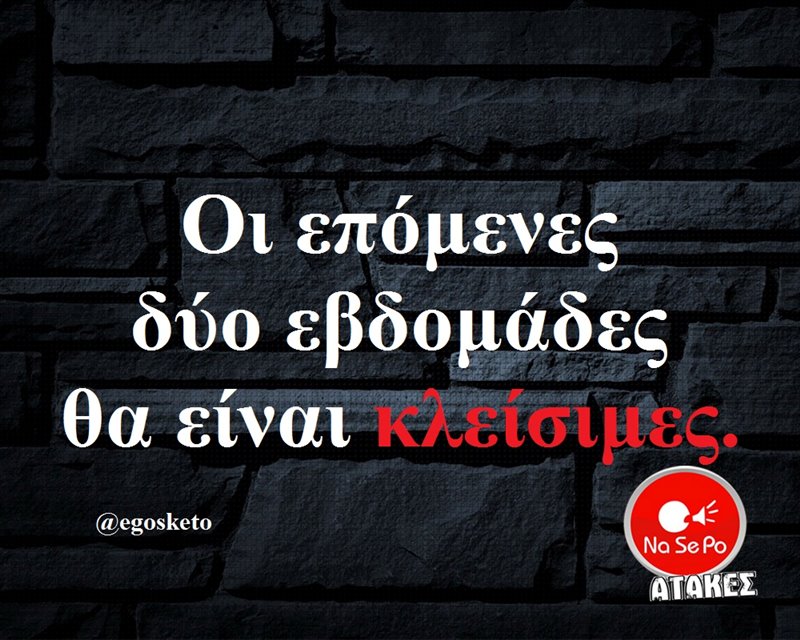 Οι επόμενες δύο εβδομάδες θα είναι κλείσιμες.