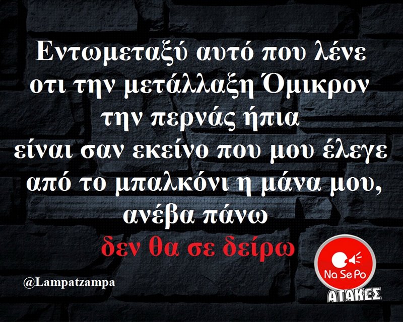 που λένε ότι την μετάλλαξη Όμικρον την περνάς ήπια είναι σαν εκείνο που μου έλεγε από το μπαλκόνι η μάνα μου, ανέβα πάνω