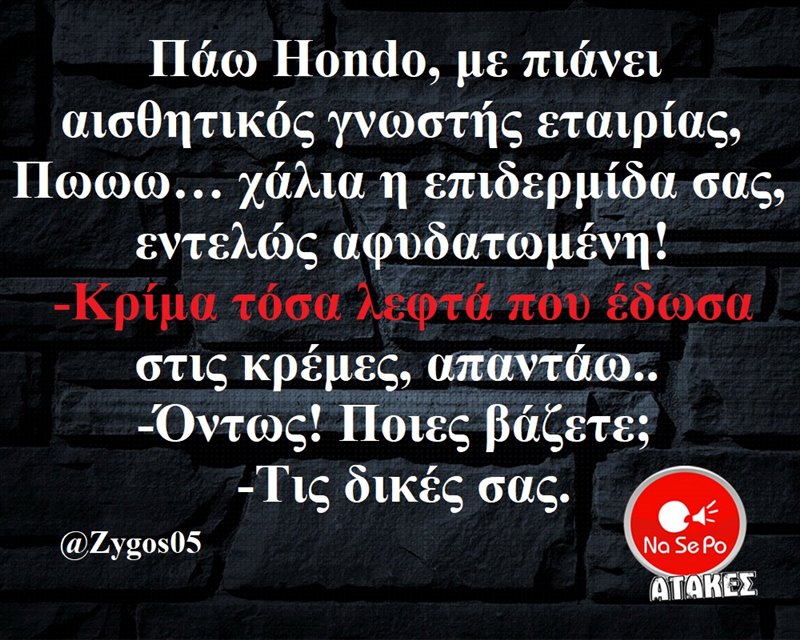 Πάω Hondo, με πιάνει αισθητικός γνωστής εταιρίας, Πωωω... χάλια η επιδερμίδα σας, εντελώς αφυδατωμένη!