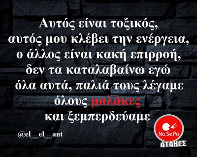 τοξικός, αυτός μου κλέβει την ενέργεια, ο άλλος είναι κακή επιρροή, δεν τα καταλαβαίνω εγώ όλα αυτά, παλιά τους λέγαμε όλους μαλάκες και ξεμπερδεύαμε @el__el__ant