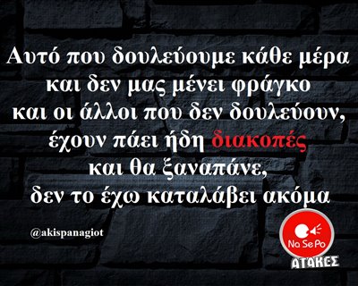 δουλεύουμε κάθε μέρα και δεν μας μένει φράγκο και οι άλλοι που δεν δουλεύουν, έχουν πάει ήδη διακοπές και θα ξαναπάνε, δεν το έχω καταλάβει ακόμα @akispanagiot