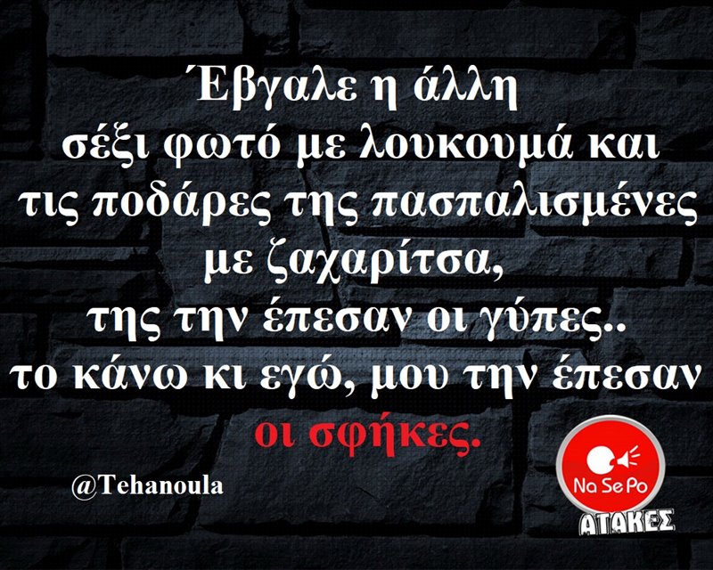 Έβγαλε η άλλη σέξι φωτό με λουκουμά και τις ποδάρες της πασπαλισμένες με ζαχαρίτσα, της την έπεσαν οι γύπες... το κάνω κι εγώ, μου την έπεσαν