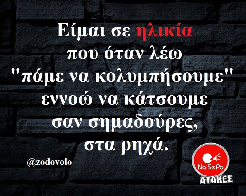 Είμαι σε ηλικία που όταν λέω “πάμε να κολυμπήσουμε”...