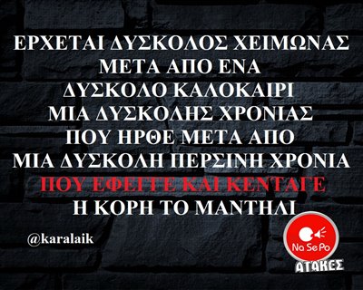 ΧΕΙΜΩΝΑΣ ΜΕΤΑ ΑΠΟ ΕΝΑ ΔΥΣΚΟΛΟ ΚΑΛΟΚΑΙΡΙ ΜΙΑ ΔΥΣΚΟΛΗΣ ΧΡΟΝΙΑΣ ΠΟΥ ΗΡΘΕ ΜΕΤΑ ΑΠΟ ΜΙΑ ΔΥΣΚΟΛΗ ΠΕΡΣΙΝΗ ΧΡΟΝΙΑ