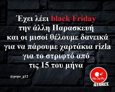 Έχει λέει Black Friday την άλλη Παρασκευή και οι μισοί θέλουμε δανεικά για να πάρουμε χαρτάκια rizla για το στριφτό από τις 15 του μήνα @pepe_g12