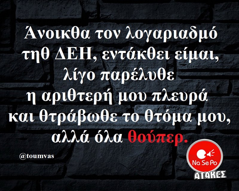 Άνοικθα τον λογαριαδμό τηθ ΔΕΗ...