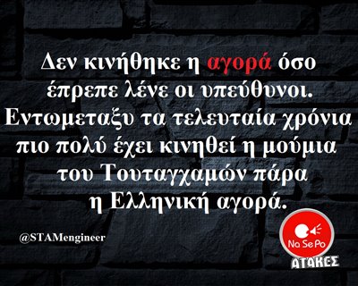 Δεν κινήθηκε η αγορά όσο έπρεπε λένε οι υπεύθυνοι. Εντωμεταξύ τα τελευταία χρόνια πιο πολύ έχει κινηθεί η μούμια του Τουταγχαμών παρά η Ελληνική αγορά. @STAMengineer