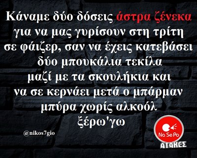 άστρα ζένεκα για να μας γυρίσουν στην Τρίτη σε φάιζερ, σαν να έχεις κατεβάσει δύο μπουκάλια τεκίλα μαζί με τα σκουλήκια και να σε κερνάει μετά ο μπάρμαν μπύρα χωρίς αλκοόλ ξέρω’γω @nikos7gio