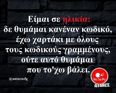 Είμαι σε ηλικία: δε θυμάμαι κανέναν κωδικό...