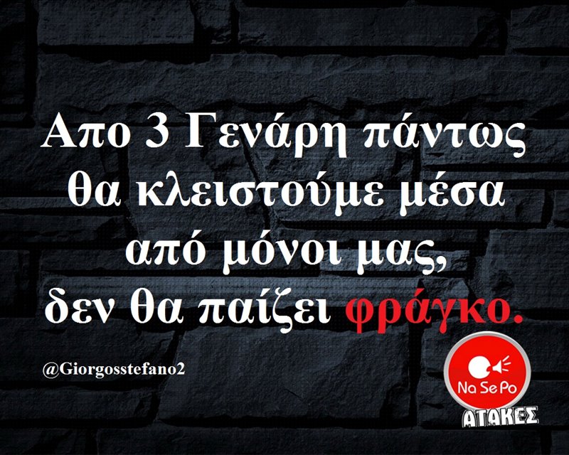 Από 3 Γενάρη πάντως θα κλειστούμε μέσα...