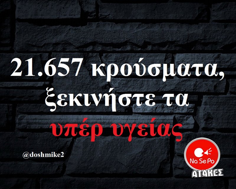 21.657 κρούσματα ξεκινήστε τα υπέρ υγείας