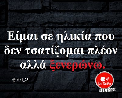 Είμαι σε ηλικία που δεν τσατίζομαι πλέον αλλά ξενερώνω.