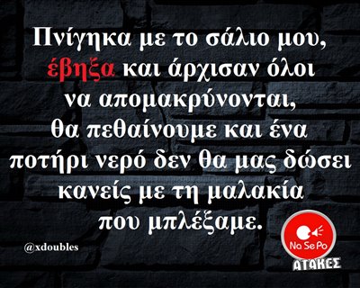 σάλιο μου, έβηξα και άρχισαν όλοι να απομακρύνονται, θα πεθαίνουμε και ένα ποτήρι νερό δεν θα μας δώσει κανείς με τη μαλακία που μπλέξαμε. @xdoubles