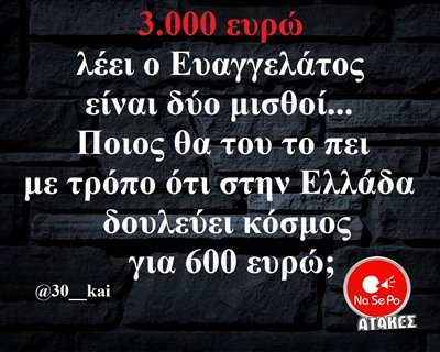 3.000 ευρώ λέει ο Ευαγγελάτος είναι δύο μισθοί...