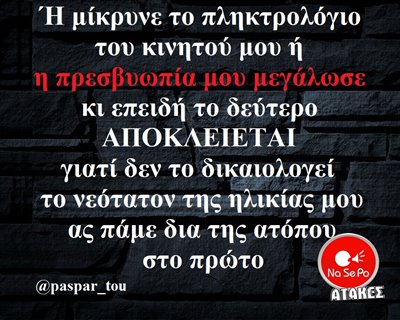 κι επειδή το δεύτερο ΑΠΟΚΛΕΙΕΤΑΙ γιατί δεν το δικαιολογεί το νεότατον της ηλικίας μου ας πάμε δια της ατόπου στο πρώτο @paspar_tou