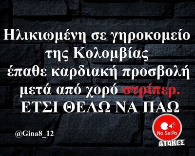 Ηλικιωμένη σε γηροκομείο της Κολομβίας έπαθε καρδιακή προσβολή μετά από χορό στριπερ. ΕΤΣΙ ΘΕΛΩ ΝΑ ΠΩ @Gina8_12