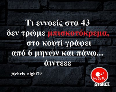 Τι εννοείς στα 43 δεν τρώμε μπισκοτόκρεμα...