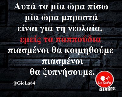 πίσω μία ώρα μπροστά είναι για τη νεολαία,