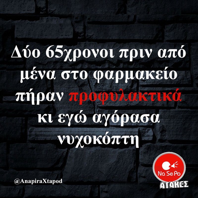 Δύο 65χρονοι πριν από μένα στο φαρμακείο