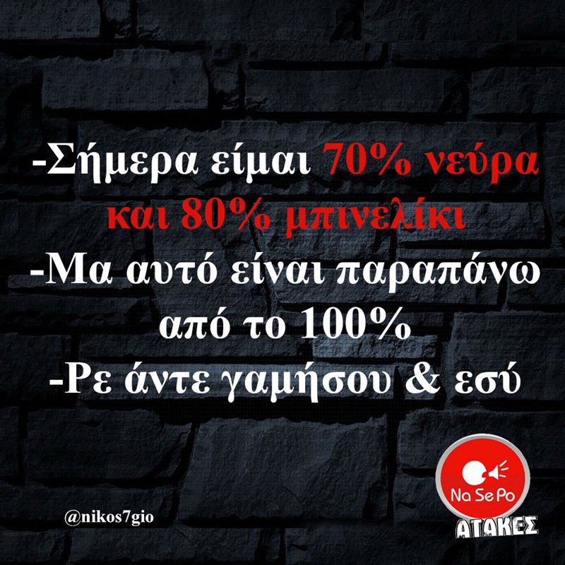 Σήμερα είμαι 70% νεύρα και 80% μπινελάκι!