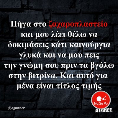 Πήγα στο ζαχαροπλαστείο και μου λέει θέλω να δοκιμάσεις κάτι καινούργια γλυκά και να μου πεις την γνώμη σου πριν τα βγάλω στην βιτρίνα. Και αυτό για μένα είναι τίτλος τιμής @ogunner