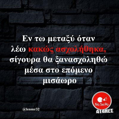 Εν τω μεταξύ όταν λέω κακώς ασχολήθηκα