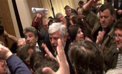Επίσης, προπηλακίστηκε ο περιφερειακός σύμβουλος Στεφανόπουλος. Οι κάτοικοι πετούσαν μπουκάλια με νερό.