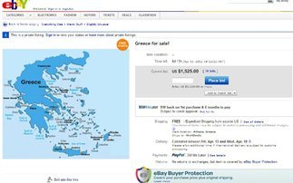 Προκλητικά δημοσιεύματα στα διεθνή μέσα ενημέρωσης φέρουν τη γνωστή ιστοσελίδα ηλεκτρονικού εμπορίου Ebay... να βάζει πωλητήριο στην Ελλάδα, με τιμή εκκίνησης στα 1.525 δολάρια!