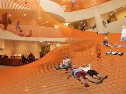 Αυτό είχε ως αποτέλεσμα να παρουσιαστούν επί τάπητος πολλές ενδιαφέρουσες προτάσεις, μία εκ των οποίων κέρδισε τις εντυπώσεις. Πιο συγκεκριμένα, οι JDS Architects αποφάσισαν να χρησιμοποιήσουν ένα τεράστιο δίχτυ εν είδει τραμπολίνου, το οποίο τοποθέτησαν στην οροφή του κτιρίου με κατεύθυνση προς τα κάτω…
