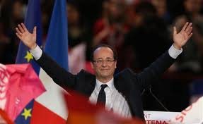 ‘Στην επαρχιακή Γαλλία την Κυριακή το βράδυ, ο νεοεκλεγμένος πρόεδρος της Γαλλίας ανέβηκε στο βήμα και ανακοίνωσε ότι θα καθοδηγήσει την μάχη της Ευρώπης κατά της λιτότητας.
