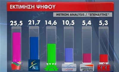 Με την αναγωγή, τα ποσοστά του ΣΥΡΙΖΑ εκτοξεύονται στο 25,5%, έναντι 21,7% της Ν.Δ. 14,6% του ΠΑΣΟΚ και 5,3% του ΚΚΕ.