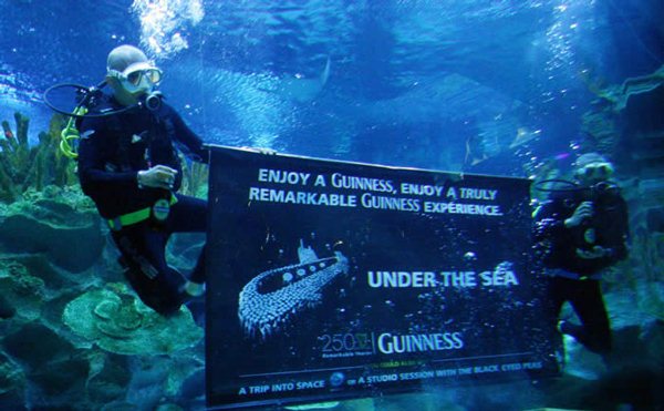 «Για τον εορτασμό των 250 χρόνων παραγωγής της μπίρας Guinness, η Diageo -μία από τις κορυφαίες εταιρείες διάθεσης ποτών ανά τον κόσμο- αποφάσισε να δώσει τη δυνατότητα στον κόσμο να πιει το ποτό του 100 μέτρα κάτω από την επιφάνεια της θάλασσας», λέει ένας εκ των υπευθύνων. Και ήταν πράγματι μια θαυμάσια ιδέα…