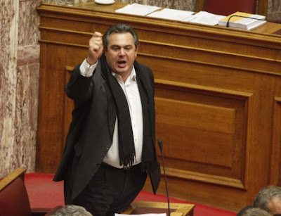 Ο κ. Καμμένος χαρακτήρισε «αλητεία» την ένταξη της χώρας στο Μνημόνιο. Κάλεσε το ΠΑΣΟΚ να διώξει τον κ. Παπακωνσταντίνου και τον κ. Σαμαρά να ζητήσει συγνώμη από τον ελληνικό λαό, βάζοντας την υπογραφή του στο δεύτερο Μνημόνιο. «Όλοι αυτοί που πρόδωσαν την Ελλάδα, πρέπει να εξαφανιστούν από την πολιτική σκηνή γιατί είναι πολιτικά υπόλογοι», είπε. trelokouneli