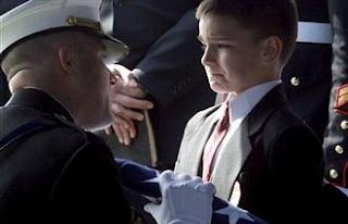Ο 8 ετών Christian Golczynski αποδέχεται την σημαία για τον πατέρα του Marc Golczynski κατά τη διάρκεια του μνημοσύνου. Ο Marc Golczynski σκοτώθηκε στο Ιράκ, λίγες μέρες πριν επιστρέψει σπίτι.