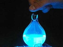 Με το περίεργο μπλε φως που αναδύει μοιάζει να ανήκει σε κάποιο μοντέρνο κλαμπ. Κι όμως, η συγκεκριμένη λάμπα είναι στην πραγματικότητα ένα χημικό φως, το οποίο λειτουργεί με ανθρώπινο αίμα!