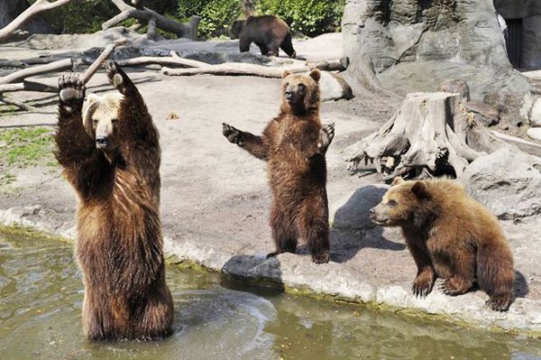 Λατρεύουν τα παιχνίδια και αποτελούν τα αγαπημένα ζώα ενός ζωολογικού κήπου στη χερσόνησο Καμτσάκα της Ρωσίας, ενώ συχνά γίνονται η διασκεδαστική «ατραξιόν» του πάρκου! Επισκέπτες και προσωπικό ξεχώρισαν αμέσως μια ομάδα καφετιών αρκούδων που επιδίδονται συχνά σε ένα είδος «γυμναστικών επιδείξεων» μπροστά σε κοινό!