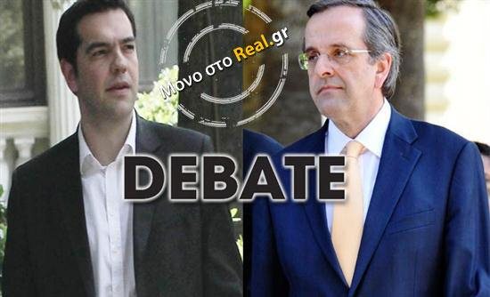 Για τη Δευτέρα 11 Ιουνίου ορίστηκε σύμφωνα με διασταυρωμένες πληροφορίες του Real.gr το πολυσυζητημένο debate μεταξύ του Αντώνη Σαμαρά και του Αλέξη Τσίπρα, ενώ δεν αναμένεται debate μεταξύ όλων των πολιτικών αρχηγών.