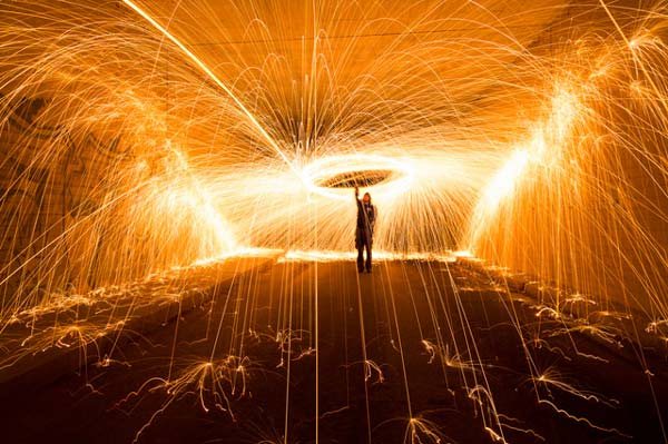 Άλλες στιγμές πάλι το φως μοιάζει να πέφτει με δύναμη από ψηλά, εν είδει παράξενης φωτεινής βροχής που σχηματίζει λάμψεις μέσα στο σκοτάδι. «Ζωγραφίζοντας τρόπον τινά με το φως είναι σαν να έχεις ξεκινήσει έναν ασυνήθιστο χορό με αστραπές και κεραυνούς! Δεν ξέρεις πού θα σε βγάλει», λέει ο φωτογράφος.