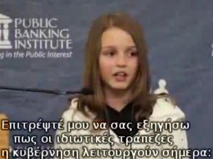 Αξίζει πραγματικά να αφιερώσετε 6 λεπτά από τον χρόνο σας για να δείτε την ομιλία που ακολουθεί. Ένα 12χρονο κοριτσάκι με πολύ απλά λόγια αναλύει των πως η καταδυνάστευση του ανθρώπου σήμερα είναι αποτέλεσμα της υπέρμετρης κερδοφορίας των παγκόσμιων δανειστών. Δείτε το! rammousia / tsantiri