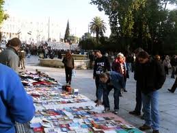Τα μέλη του κινήματος Αγανακτισμένων Θήβας διοργάνωσαν χτες ένα μεγάλο παζάρι ανταλλαγής χρησιμοποιημένων ρούχων και αντικειμένων στην κεντρική πλατεία της πόλης.