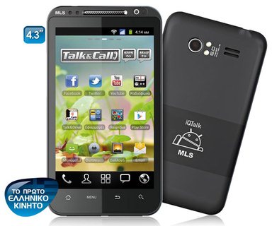 Τη δημιουργία του πρώτου ελληνικού κινητού τηλεφώνου, με το όνομα MLS iQTalk, ανακοίνωσε η MLS Πληροφορική. Το κινητό συνδυάζει τεχνολογίες αναγνώρισης φωνής (Talk) και τεχνητής νοημοσύνης (iQ), τις οποίες η εταιρεία αναπτύσσει εδώ και χρόνια. Το MLS iQTalk είναι smartphone με λειτουργικό σύστημα Android που καταλαβαίνει και μιλάει την ελληνική γλώσσα. Η λεπτομερής παρουσίασή του θα πραγματοποιηθεί μόλις κυκλοφορήσει επισήμως στην ελληνική αγορά τις επόμενες μέρες.