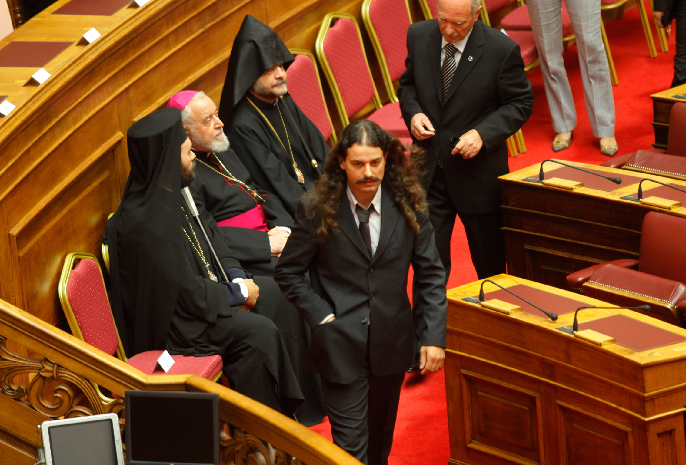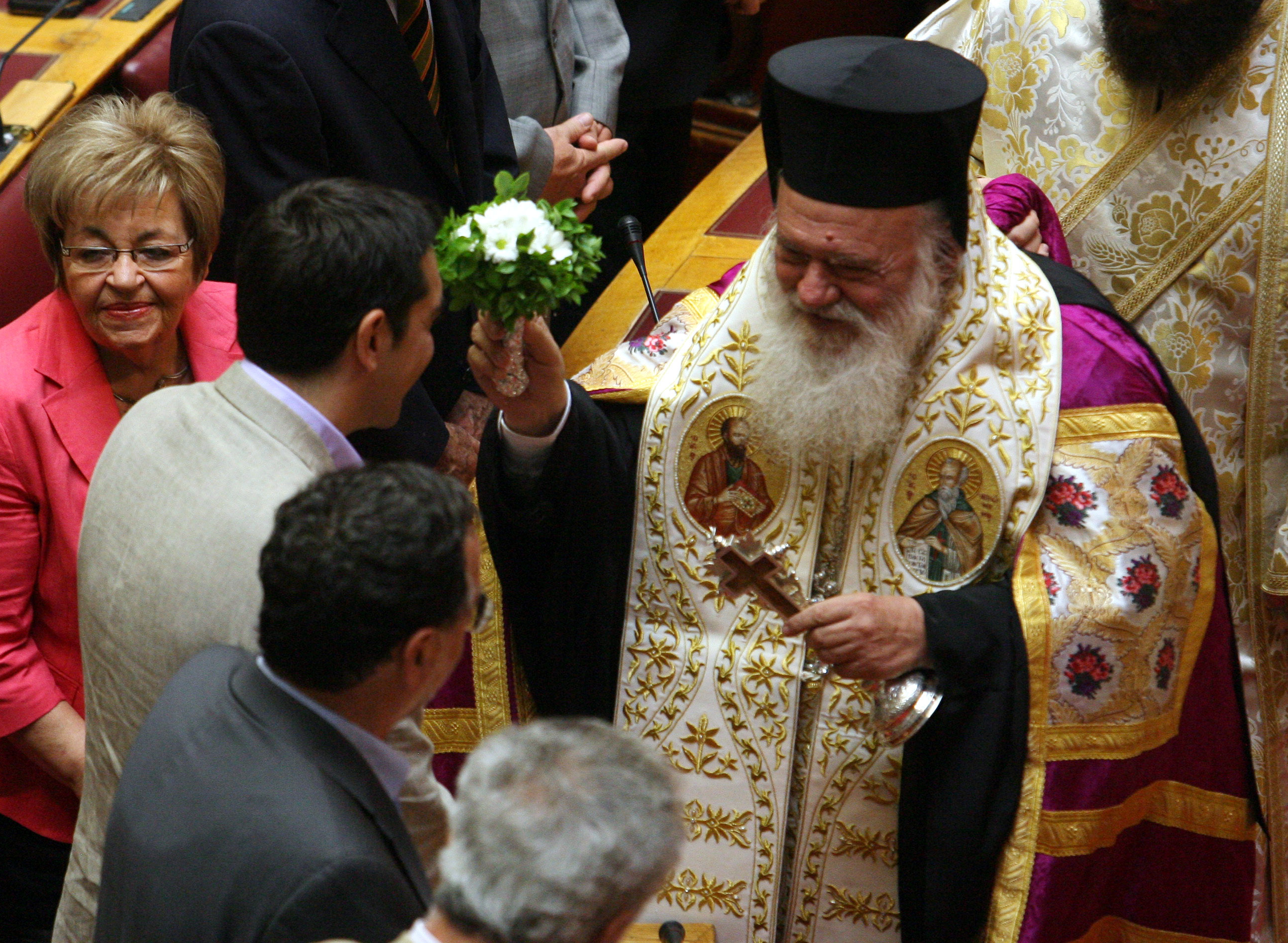 Ώρα 11.20: Ο νεότερος σε ηλικία βουλευτής Γιάννης Κεφαλογιάννης καλείται από τον κ. Τραγάκη να συνοδεύσει στην αίθουσα της Ολομέλειας τον Αρχιεπίσκοπο Ιερώνυμο και τα μέλη της Διαρκούς Ιεράς Συνόδου.