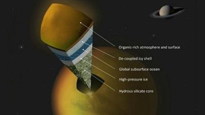 Νέες ισχυρές ενδείξεις ότι κάτω από την παγωμένη επιφάνεια του μεγαλύτερου δορυφόρου του Κρόνου, του Τιτάνα, υπάρχει ένας μεγάλος υγρός ωκεανός, μεγαλύτερος από όλους μαζί τους ωκεανούς της Γης, εντόπισε το διαστημόπλοιο "Κασίνι" της NASΑ.